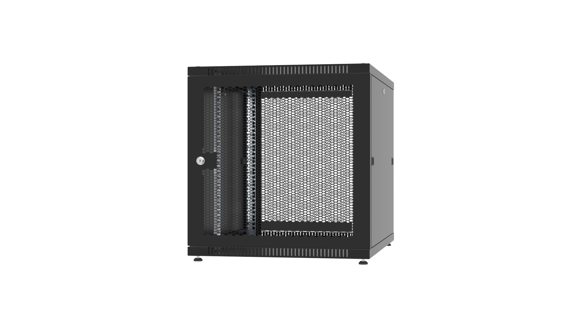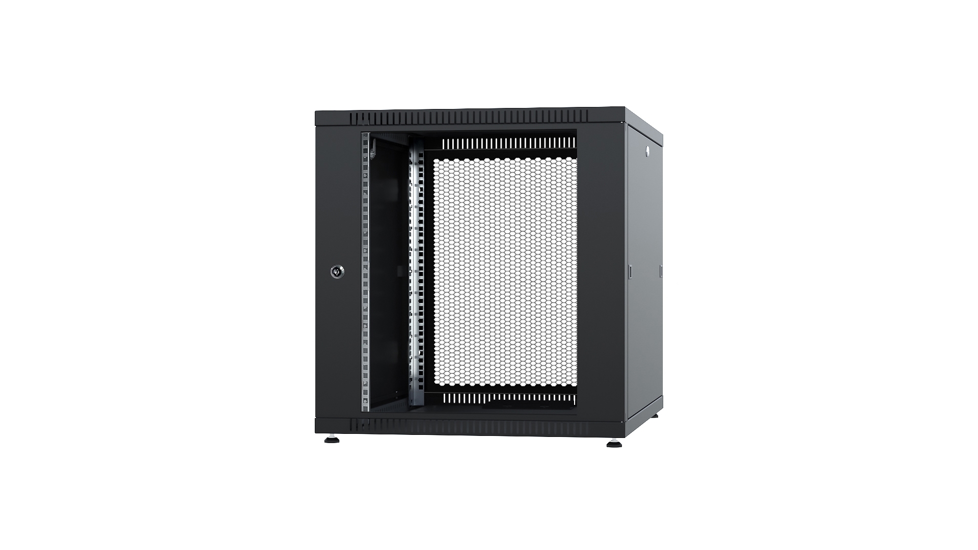 Шкаф разборный напольный 19'', 12U, 600x1000 мм, чёрный RAL9005, передняя дверь перфорированная, задняя дверь перфорированная QTEC...