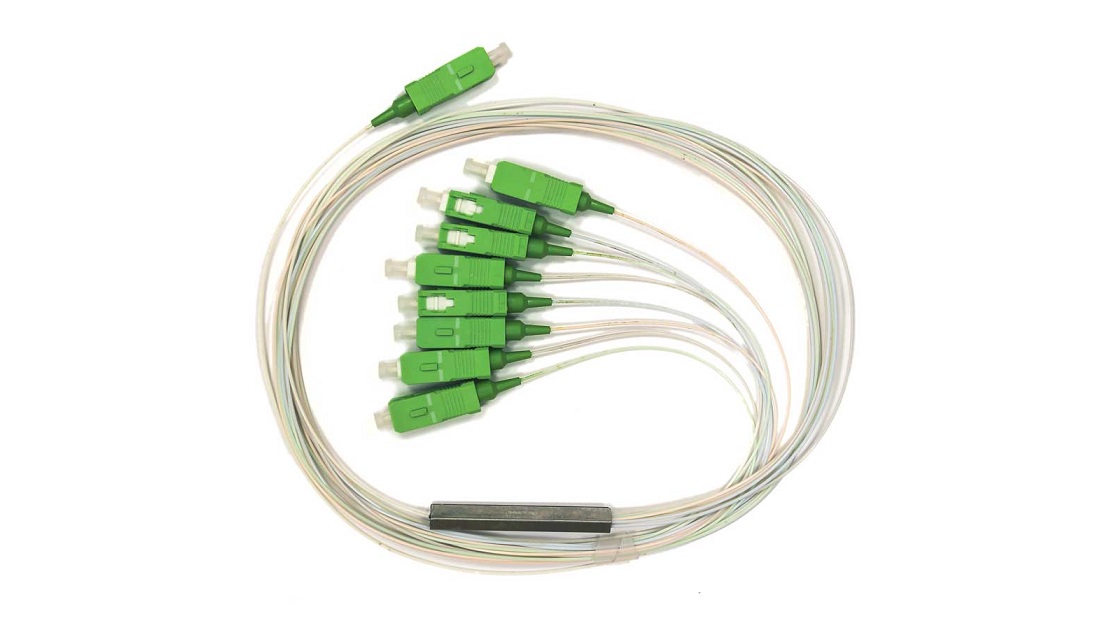 Оптический разветвитель, планарный, 1х8, концы 0,9 мм, 1 м, разъемы SC/APC QTECH РО-PLC-1х8-A0.9-SC/APC-1M