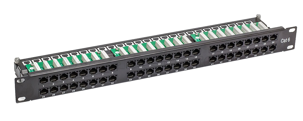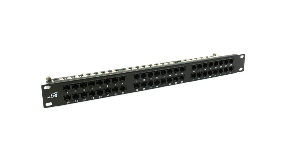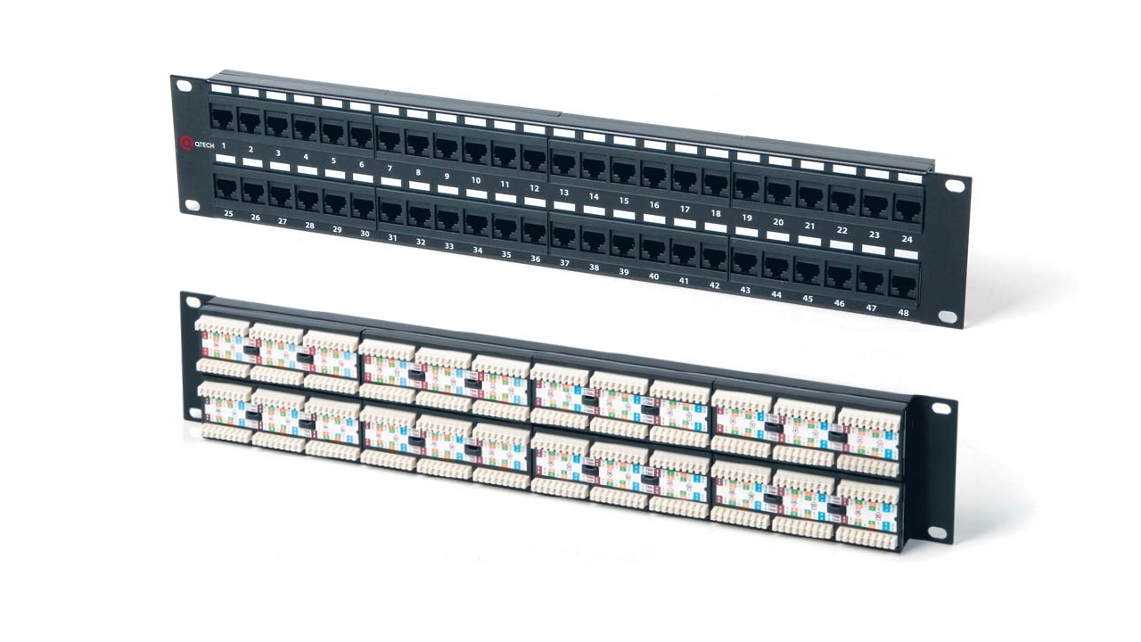 Патч-панель 19'', 1U, 48 портов RJ45, категория 5e, DUAL IDC QTECH QPP-48RM-C5EUTP-8P8C-IDC-1U