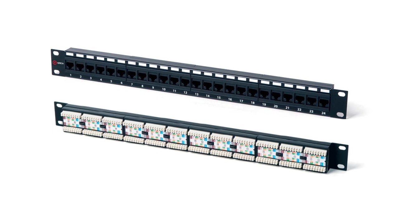 Патч-панель 19'', 1U, 24 порта RJ45, категория 5e, KRONE IDC QTECH QPP-24RM-C5EUTP-8P8C-IDC