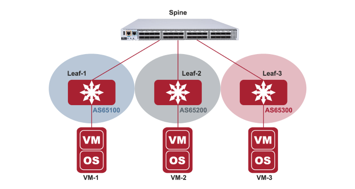Leaf-1#ping 2.2.2.2 source loopback 1 Sending 5, 100-byte ICMP Echoes to 2.2.2.2, timeout is 2 seconds: < press Ctrl+C to break > !!!!! Success rate is 100 percent (5/5), round-trip min/avg/max = 1/1/1 ms. Leaf-1#ping 3.3.3.3 source loopback 1 Sending 5, 100-byte ICMP Echoes to 3.3.3.3, timeout is 2 seconds: < press Ctrl+C to break > !!!!! Success rate is 100 percent (5/5), round-trip min/avg/max = 1/1/1 ms.