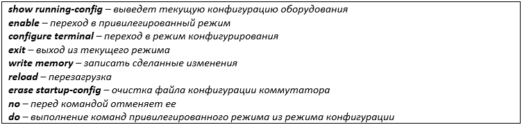 С помощью команды device#write memory – устройство запишет сделанные вами изменения из временной памяти в постоянную. По умолчанию изменения храниться в энергозависимой памяти и если вы поле окончания работ не сохраните настройки, то после выключения коммутатора от сети вы потеряете последние изменения.