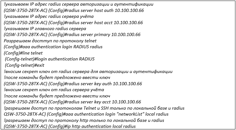 Настройка коммутатора на работу с Radius-сервером.