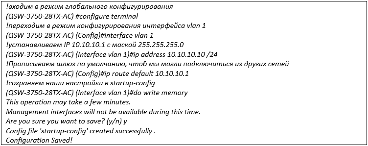 На этом этапе основные настройки коммутатора QTECH QSW-3750 завершены.