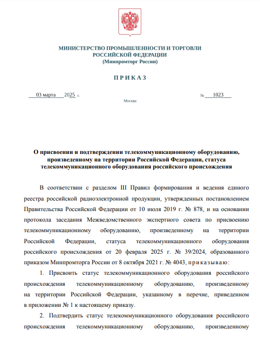 Минпромторг России официально подтвердил статус телекоммуникационного оборудования российского происхождения (ТОРП) для коммутаторов серии QSW-3750. Это решение открывает возможность использования оборудования QTECH в проектах государственных заказчиков и подтверждает его соответствие требованиям отечественных стандартов.