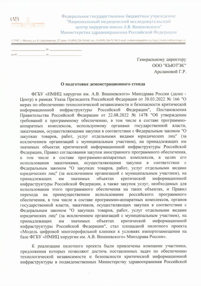 Приняв участие в тестировании первого российского ПАК для медицины на базе ФГБУ «НМИЦ хирургии им. А. В. Вишневского», QTECH подтвердила актуальность и значимость разработанного комплексного решение, которое повысит уровень безопасности и защиты данных в здравоохранении.