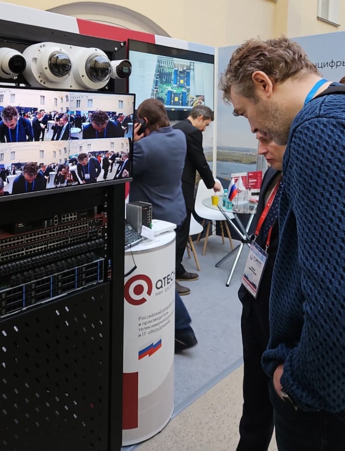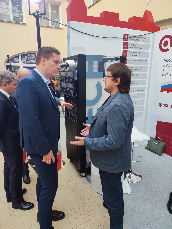 В атриуме музея связи была организована выставка, на которой компания QTECH представила свое оборудование и готовые решения: