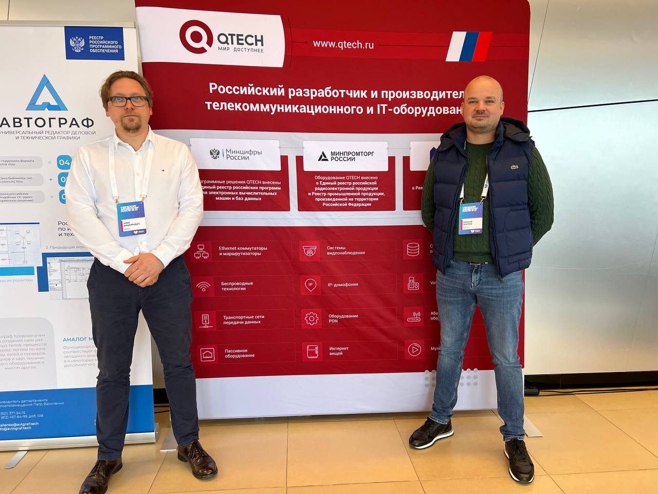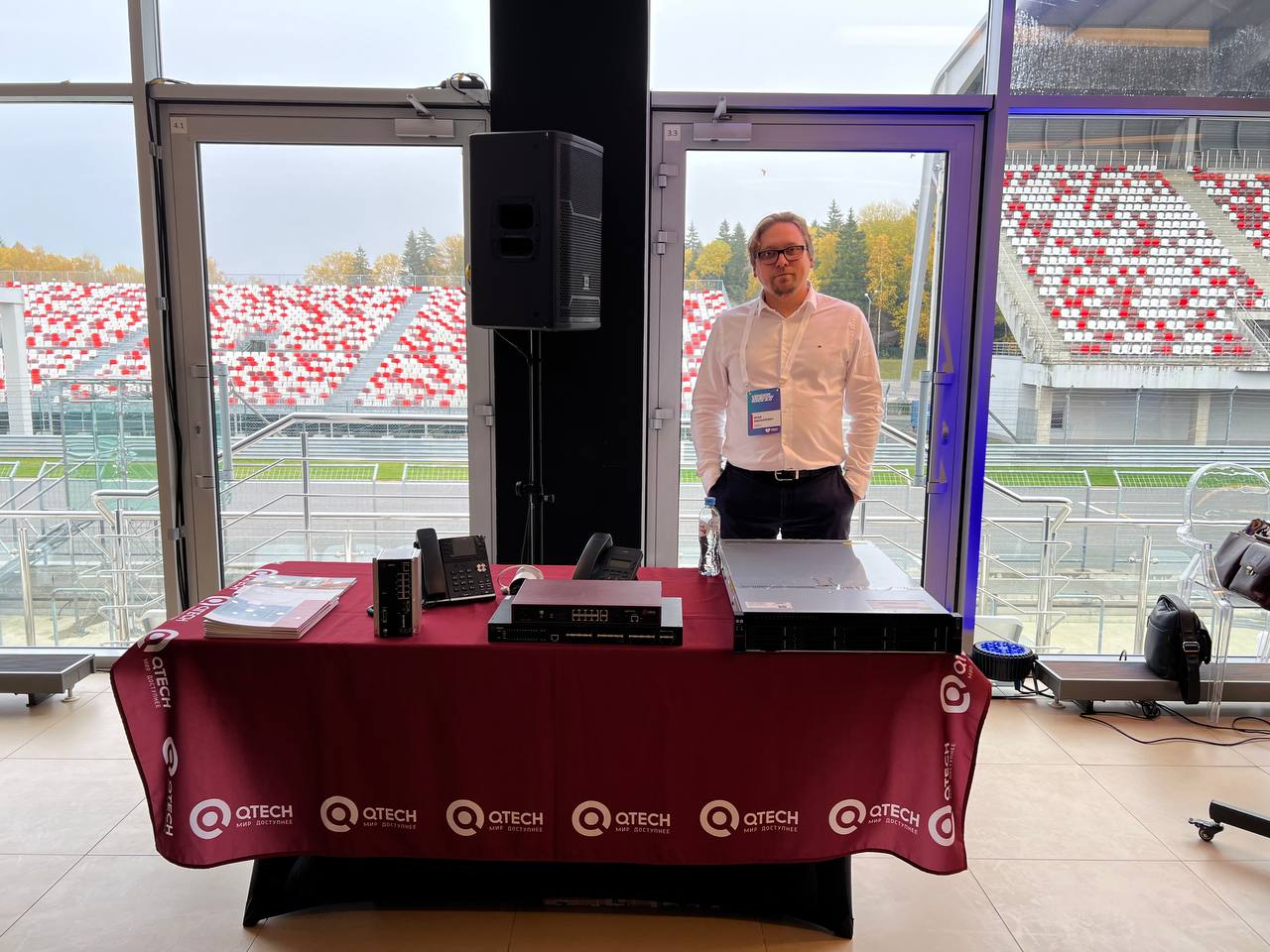 Плотная программа мероприятия открылась деловой частью. Здесь гости знакомились с последними тенденциями в сфере отечественной цифровизации и технологий не только в формате докладов от ИТ-экспертов, но и наглядно: была организована демо-зона с телекоммуникационным оборудованием вендоров. Наш представитель Илья Бишкиревич рассказал слушателям об опыте QTECH в реализации процессов импортозамещения, поделился успешными кейсами заказчиков, претворенными в жизнь с использованием оборудования, производимого QTECH в России. Также для всех желающих Илья продемонстрировал работу наших продуктов на стенде.