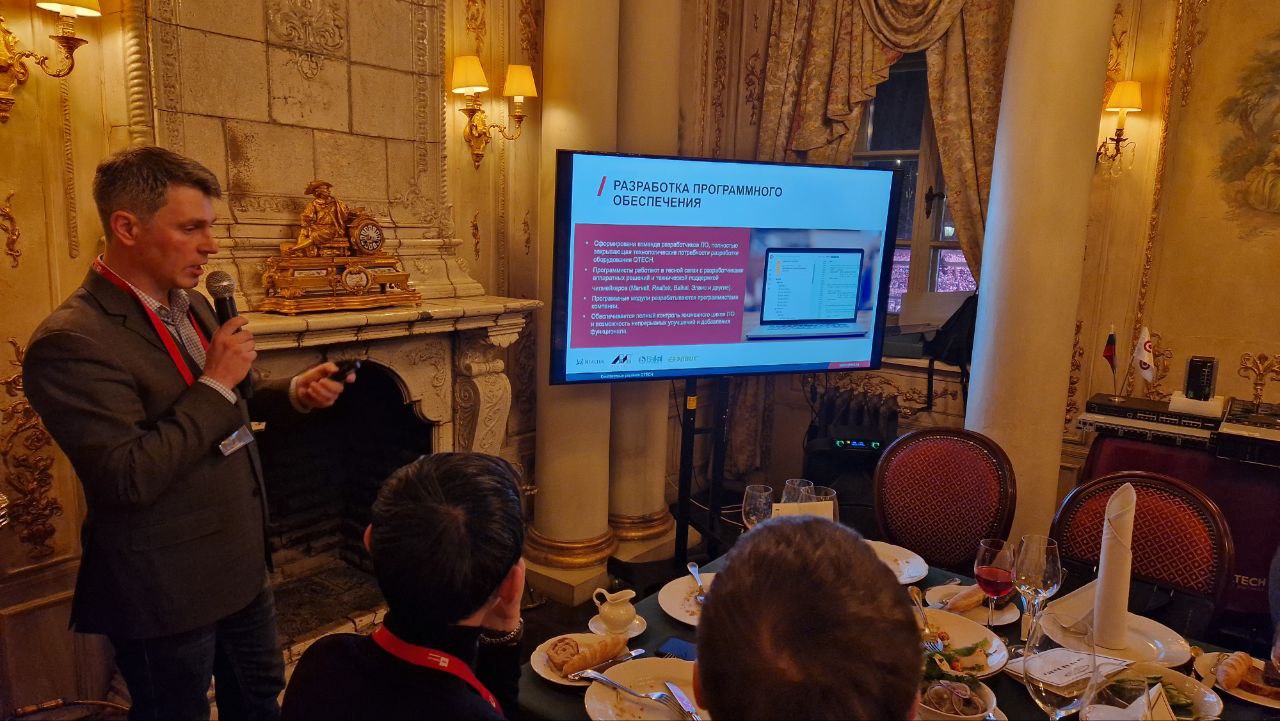 Следом от нашей компании выступил менеджер по развитию бизнеса Михаил Порошин. В своей речи Михаил поделился достижениями компании за 2022 год, отметив новинки серверов российского производства, вошедшее в реестр российской радиоэлектронной продукции и получившее статус ТОРП.