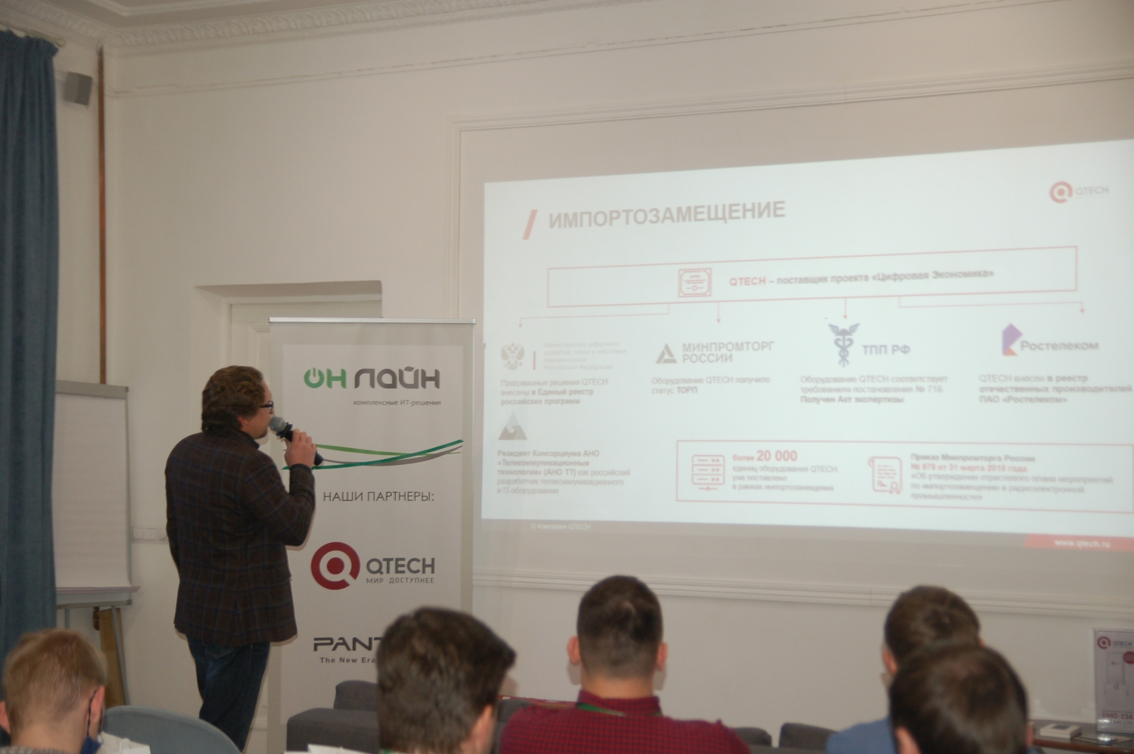Руководитель направления развития бизнеса QTECH – Илья Бишкиревич рассказал участникам ONLINE URAL о предлагаемых сетевых решениях, участии компании в реализации госпрограммы импортозамещения и оборудовании ТОРП. Далее Илья познакомил собравшихся с планами QTECH на будущее, в частности, получения статуса ТОРП на новые линейки оборудования.