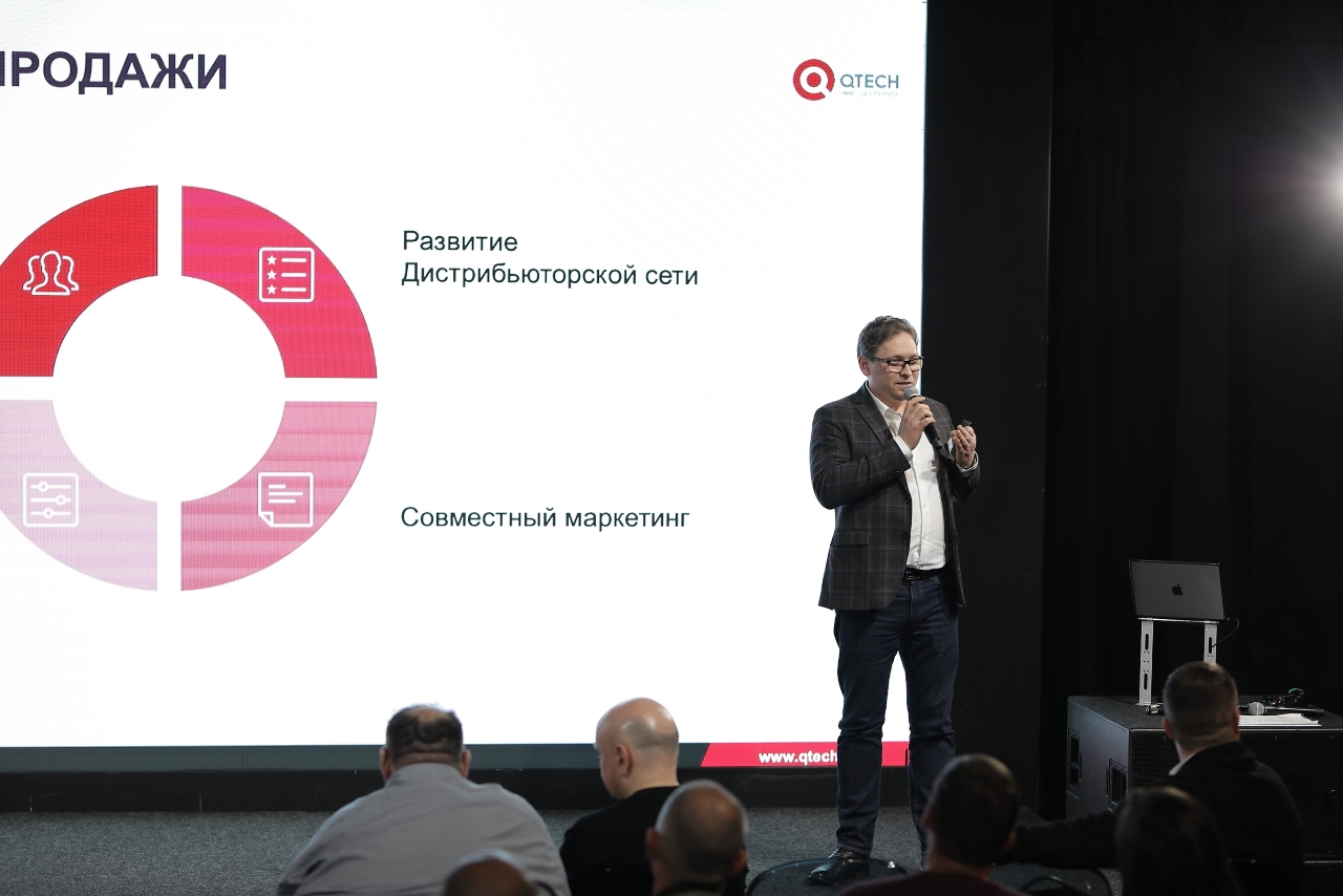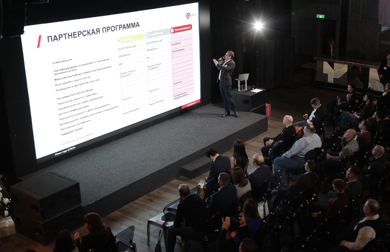 Новогодний спешл открылся динамичной деловой частью, в ходе которого выступил директор по развитию бизнеса QTECH Илья Бишкиревич. В своей презентации Илья подвел итоги и достижения компании, среди которых: