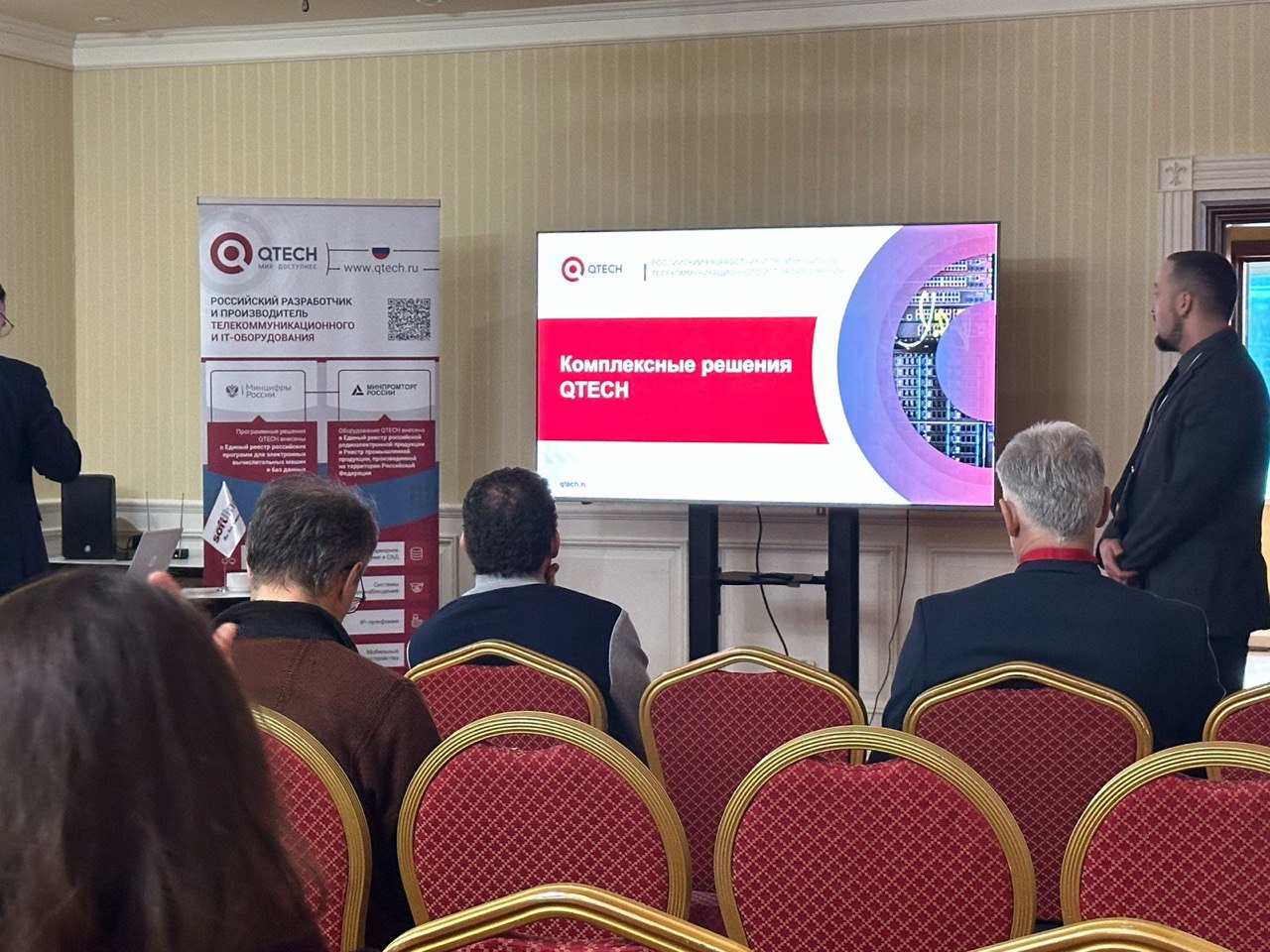 В Нижнем Новгороде менеджер по развитию бизнеса QTECH, Павел Коновалов, представил доклад "Почему QTECH: комплексные решения для вашего бизнеса", в котором подробно осветил каждое направление деятельности компании.