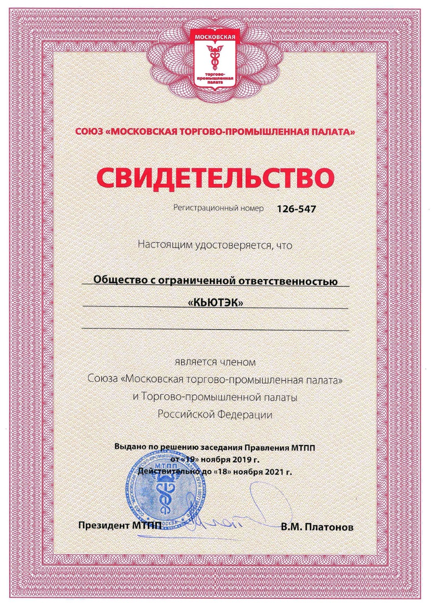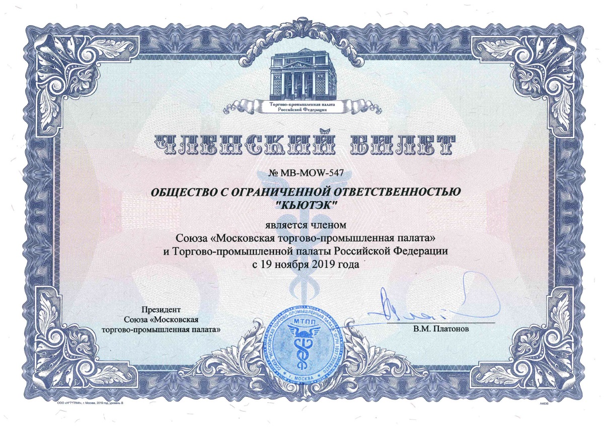 25 декабря 2019 года состоялась Церемония вручения регистрационных документов, подтверждающих членство компании QTECH в Союзе «Московская торгово-промышленная палата» Российской Федерации. Почетный статус члена крупнейшего объединения предпринимателей Москвы предоставляет огромные возможности и преференции для успешного ведения бизнеса компании QTECH.