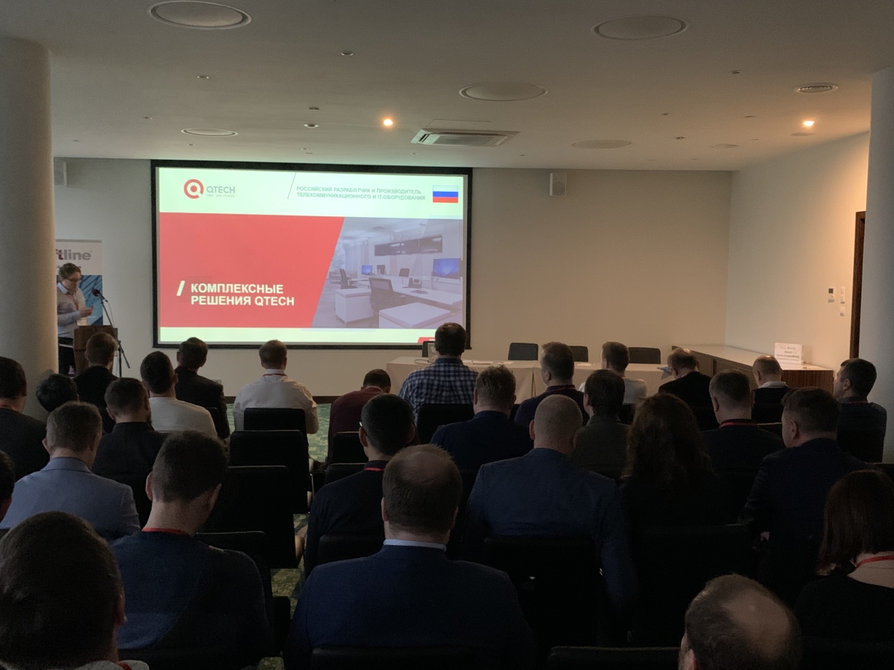 Нашим спикером выступил Илья Бишкиревич, директор по развитию бизнеса. Его презентация была посвящена оборудованию QTECH и комплексному подходу к созданию ИТ-инфраструктуры. Илья рассмотрел вопрос создания полной инфраструктуры "под ключ" с использованием оборудования QTECH. Функционал нашей продукции позволяет решить практически любую задачу, что подтвердили и успешно реализованные проекты, представленные аудитории.