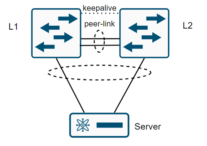 - Сервер подключается к обоим коммутаторам MCLAG-домена.