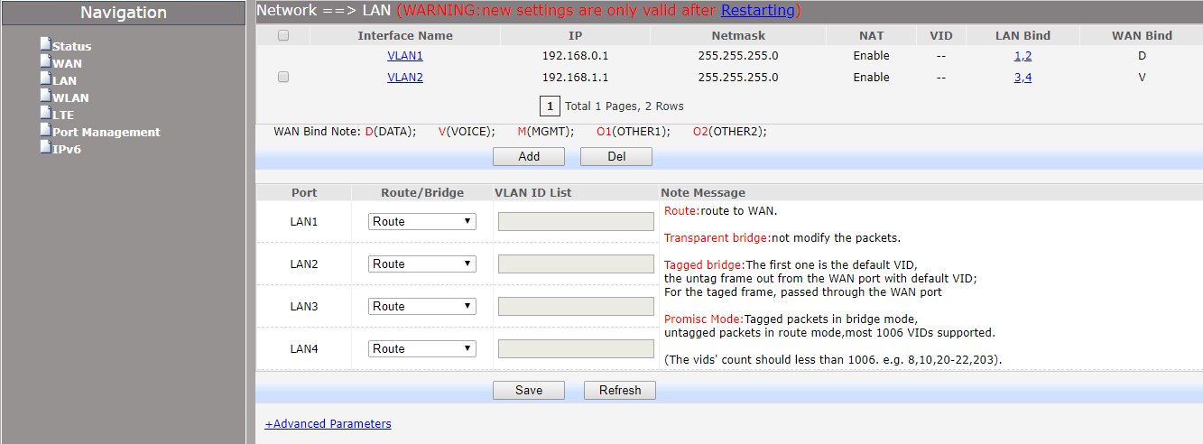 3. Далее, во вкладке «Network ==> LAN» необходимо создать Vlan`ы и привязать различные интерфейсы, созданные ранее, к различным портам роутера, если это необходимо (Рис. 4).