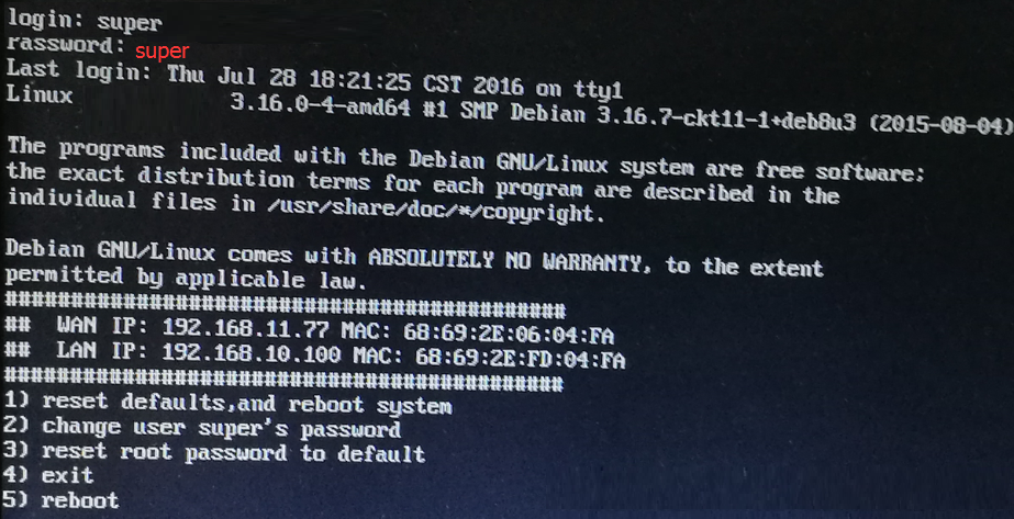 - Вы увидите загруженную операционную систему. Выполните вход со следующим логином/паролем: super/super